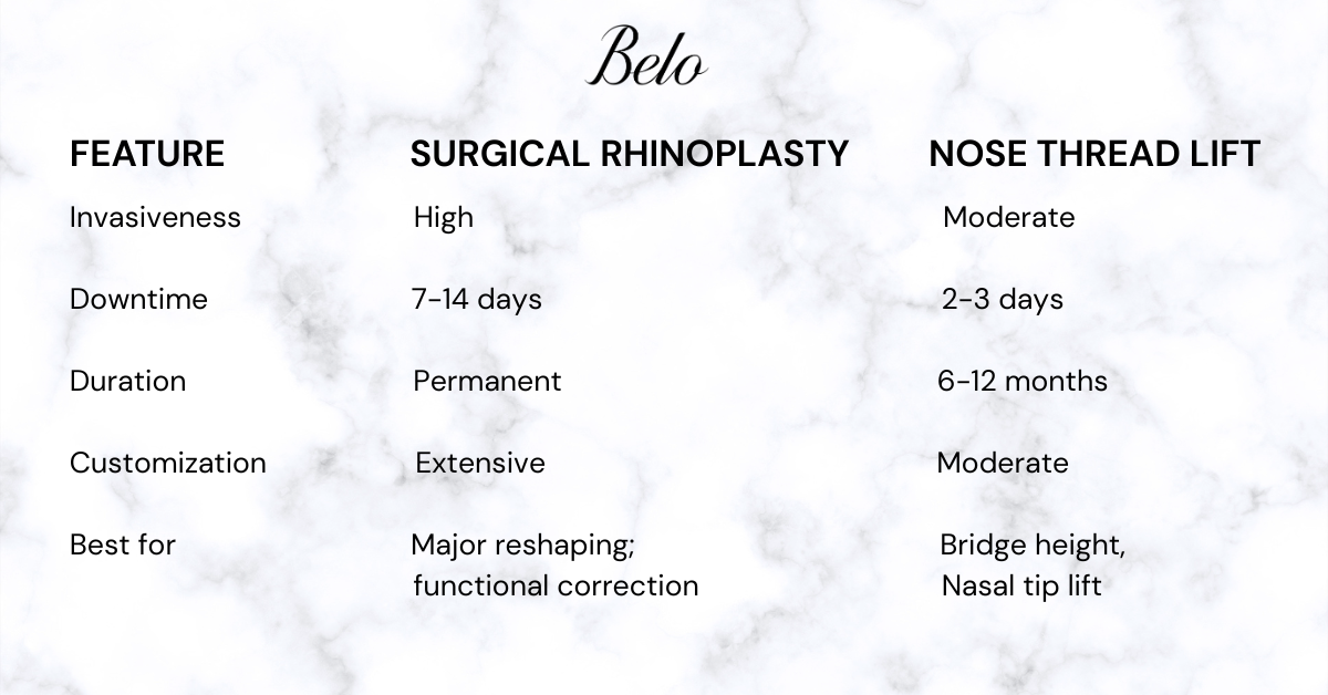 If you crave a dramatic, forever change, Rhinoplasty is your answer. If you want a quick, beautiful boost that can evolve with you, the Thread Lift is your secret weapon.