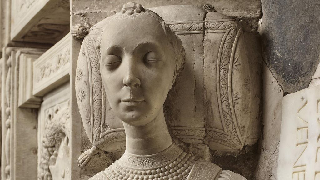 Un particolare del monumento funebre di Medea Colleoni di Giovanni Antonio Amadeo – Foto tratta da L’Eco di Bergamo